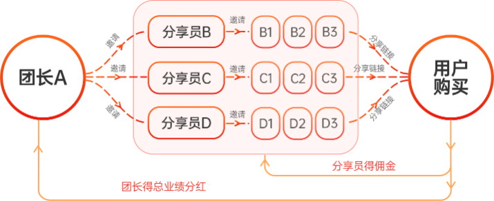 團長享有分銷訂單所產生的一級、二級傭金獎勵外,還享有團隊總業績分紅;