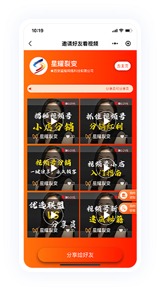 分享員將短視頻分享給好友,好友點擊鏈接,就可以輕松完成鎖客,綁定關系!好友自主下單,分享員依然得傭金